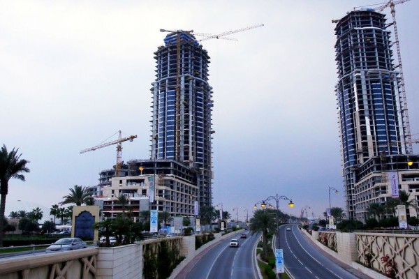 The two beacon-like office towers flank the main access road and serve as the gateway to the overall Pearl development. The Abraj Quartier will include 2,200 residential units and a total of more than 350,000 m² of built area.
